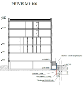 - Skersiniai pjūviai pateikiami papildomai, gavus projektų derinimo inžinieriaus prašymą, esant sudėtingesnėms situacijoms, kuriuose turi būti nurodyti atstumai tiek horizontalūs, tiek vertikalūs nuo projektuojamo statinio/įrenginio/konstrukcijos.