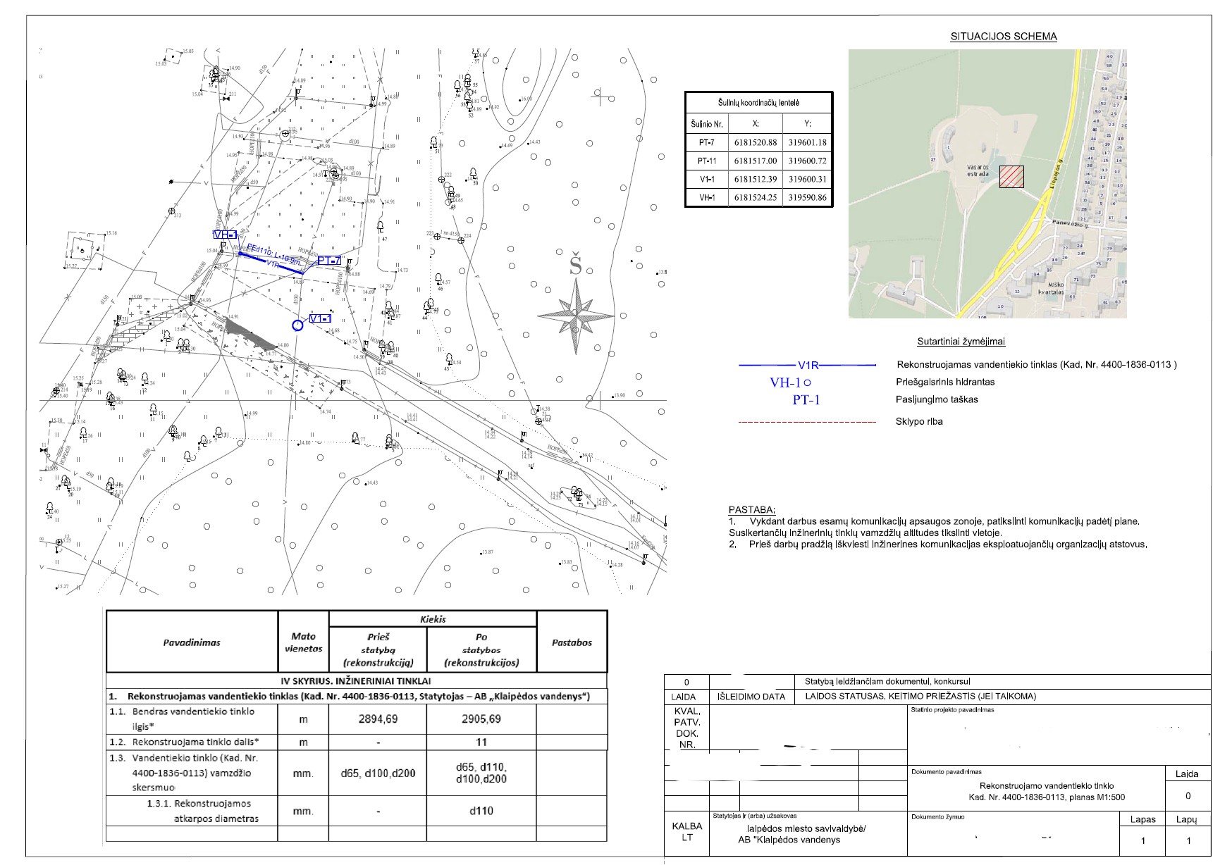 PASTABA. Projekto sprendiniai vertinami vadovaujantis 2025-08-12 AB „Klaipėdos vanduo“ generalinio direktoriaus įsakymu Nr. 2025/V-ADM.4-4.E-76 „Dėl AB „Klaipėdos vanduo“ projektų derinimo grupės atsakomybių ribos derinant projektus aprašas“.