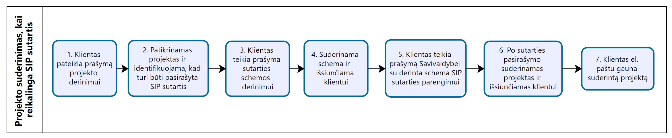 Projekto derinimo eiga, kai pasirašoma SIP sutartis: